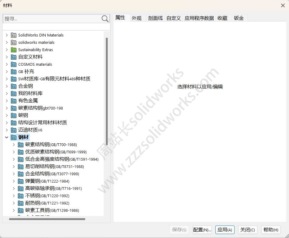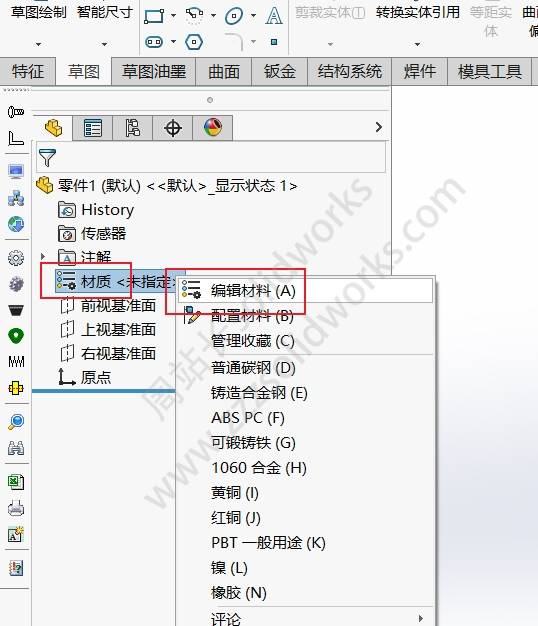 然后重新打开SW,在设计树材质上右键,编辑材料;