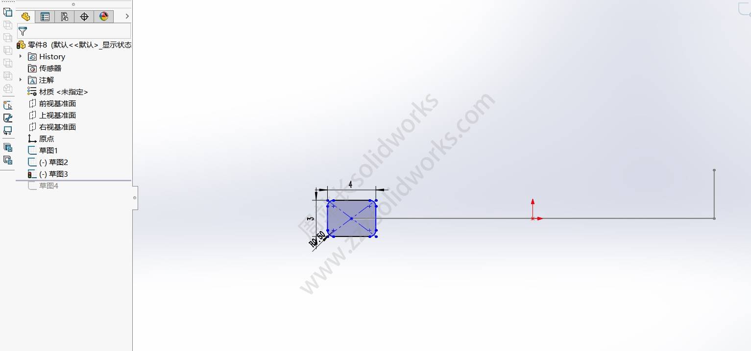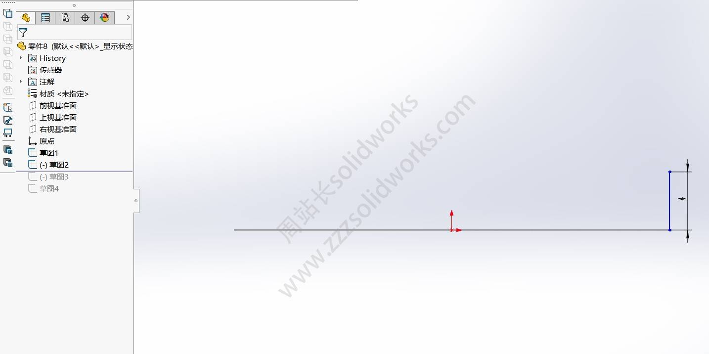 前视基准面绘制直线,注意长度,退出草图。得到草图2。