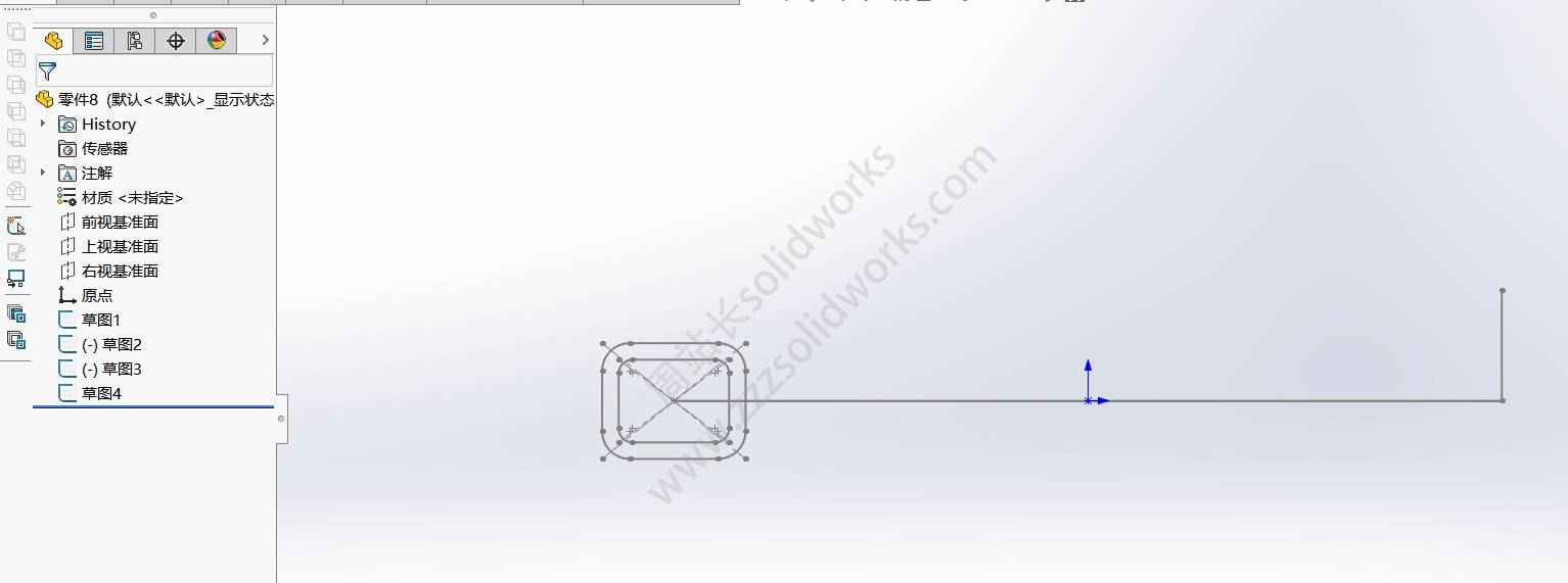 前视基准面绘制矩形,添加圆角R1,退出草图,得到草图4。