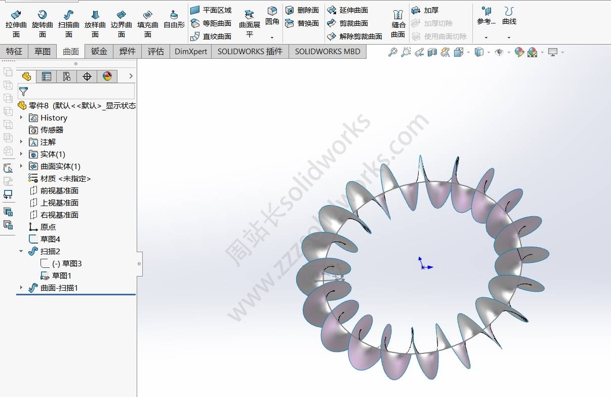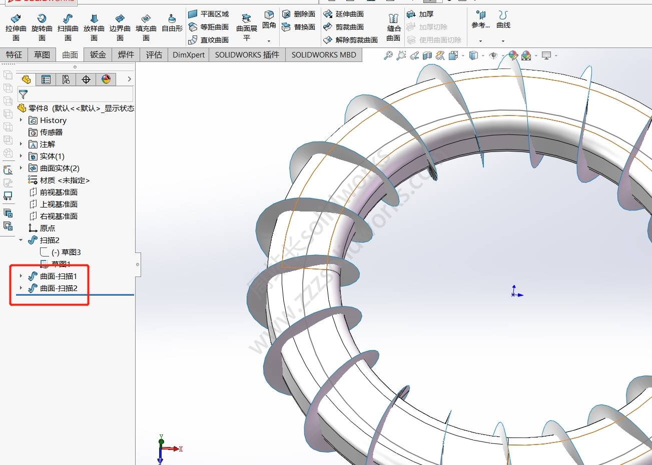 需要利用多个基准面绘制草图,多次利用扫描及扫描曲面工具。包含的内容比较丰富,请耐心看完。