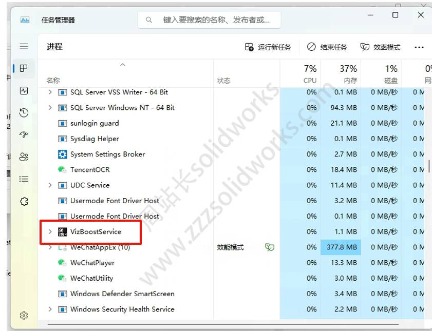 在进程里找到VizBoostService,右键,强制停止。