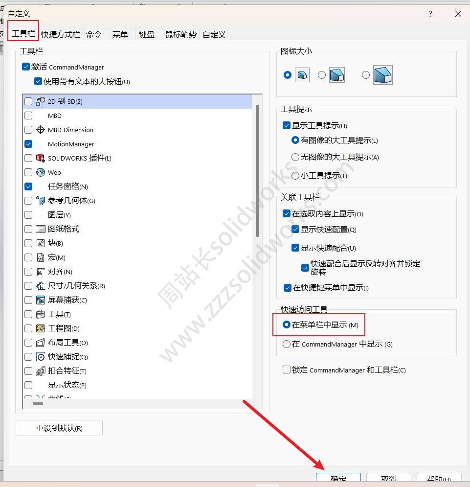今天一位用户问我,周站长,我的solidworks快速访问工具栏不在顶部了,怎么设置回去?