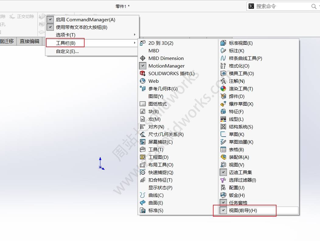 solidworks视图前导工具栏不见了,怎么显示? solidworks问题集 23年5月30日 编辑 周站长 取消关注 关注 私信 今天一位用户问我,周站长,我的solidworks视图前导工具栏没有了,怎么显示? 他是这样的; 解决方法: 工具栏任意位置处右键,点击工具栏,将视图前导勾上即可。 给TA打赏 共{{data.count}}人 人已打赏 solidworks视图前导solidworks视图前导工具栏不见了solidworks视图前导怎么显示