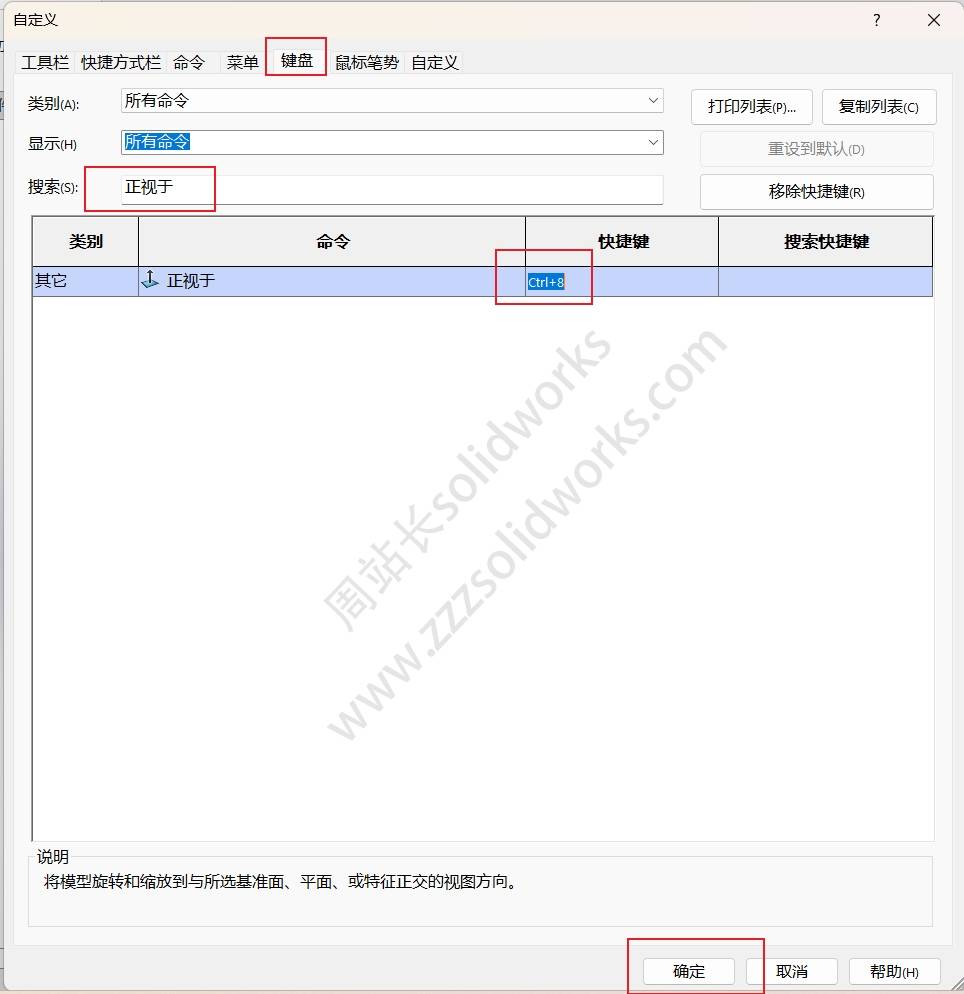 今天一位用户问我,周站长solidworks的正视于快捷键是什么?怎么修改?